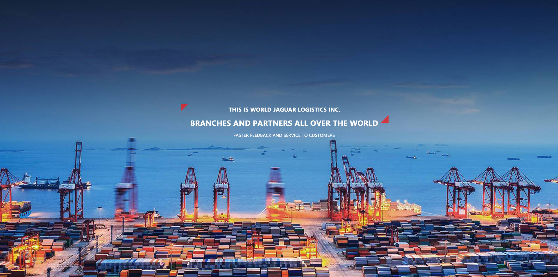 with more than 20 years development and harvest,  World Jaguar expands its footprints more than all around China: it has opened up own branches in Qingdao,Shanghai,Hongkong, Tianjin,Beijing,Dalian,Ningbo,Guangzhou, Shenzhen,Xi'an,Changsha,Wuhan,Chengdu,Chongqing,Lianyungang,Xiamen,Shijiazhuang,Jinan,Yantai,Weihai,Huangdao,Shenyang, Shidao, Taipei, Los Angeles,New York and Chicago,and has set up own agent network world wide, including more than 120 international lanes, 150 direct consolidation services and 1000 valuable agents, covering over 1000 ports and inland destinations. World Jaguar has tens of thousand square meters LCL warehouse and outdoor container yard with intelligent storage information platform and Omni-directional monitoring. World Jaguar can offer customer convenient, safe, incorporate and dynamic services that include Ocean Freight, Air Freight, Railway Transportation, Multimodal Transportation, Bonded Warehousing Service, Storage, Cross Border E-commerce, Customs Declaration, International Transit Consolidation, Insurance, Package, Distribution, etc.